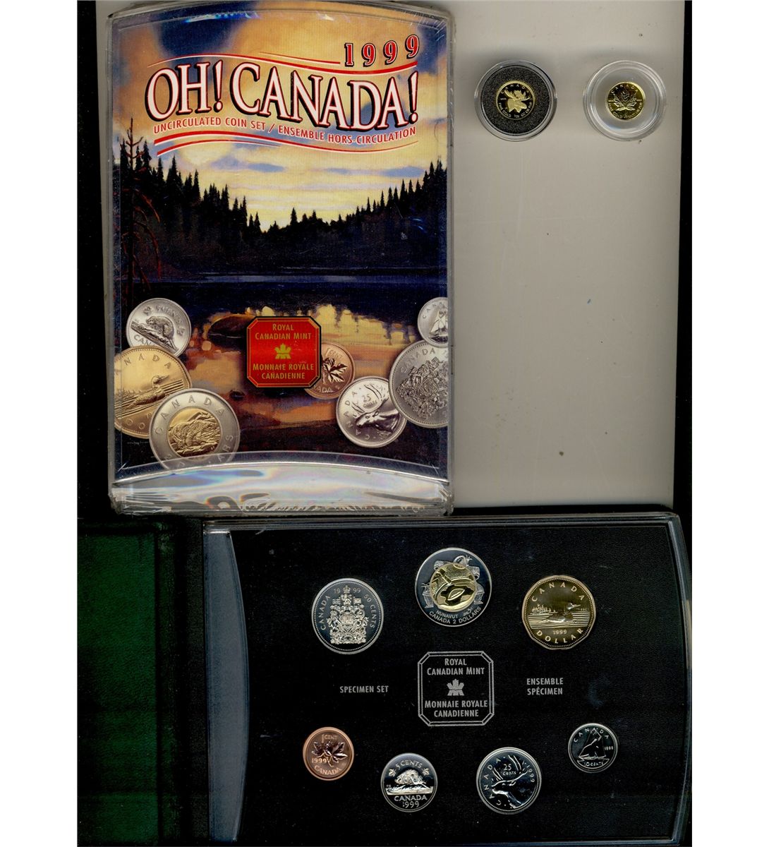 RCM Lot; Includes 1999 Specimen Set, 2004 1/25oz Gold Moose, 1996 1/20 Gold ML & 1999 OH! Canada set.
