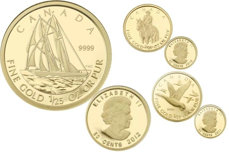 RCM Lot; includes 1/25th oz Gold 2010, 2011 & 2012 Coin issue. Lot of 3 coins. TAX Exempt