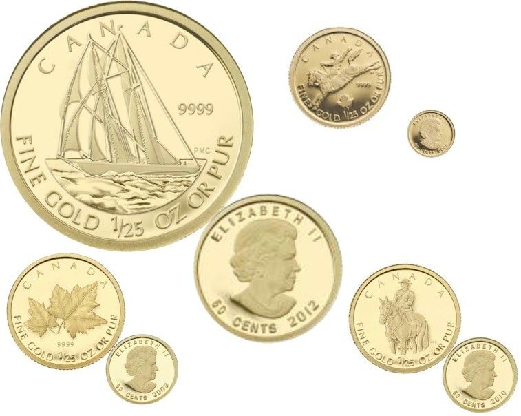 RCM Lot; includes 1/25th oz Gold Coin 2006, 2009, 2010 & 2012. Lot of 4 pcs. TAX Exempt.