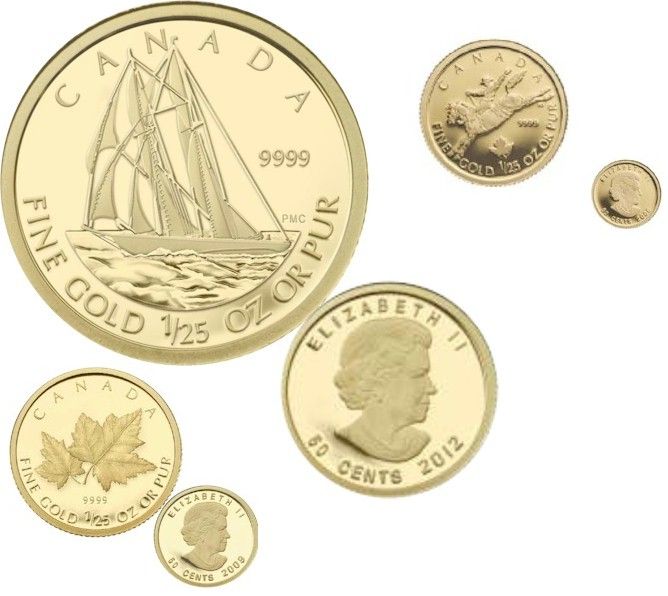 RCM Lot; includes 1/25th oz Gold Coin 2006, 2009 & 2012. Lot of 3 pcs. TAX Exempt.
