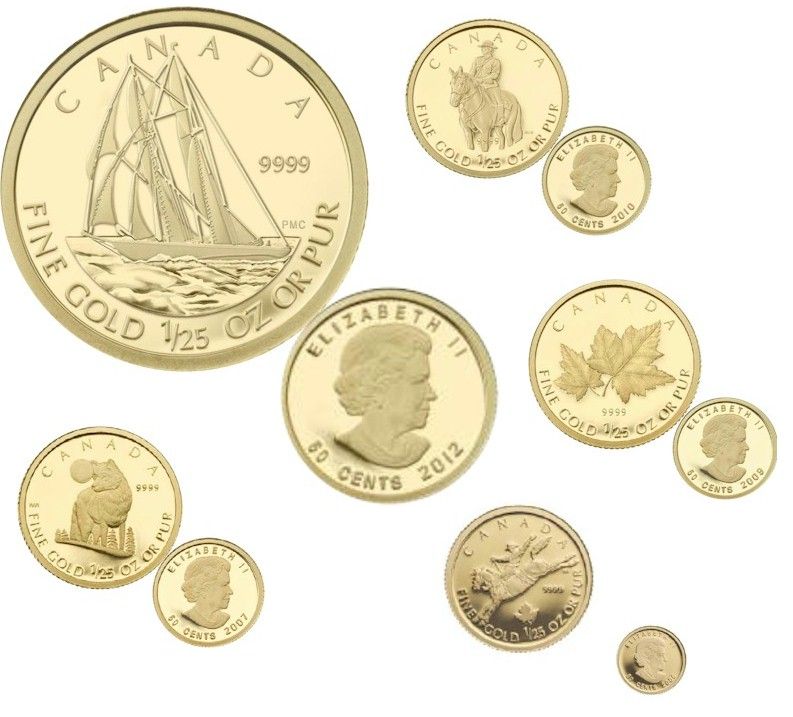 RCM Lot; includes 1/25th oz Gold Coins, 2006, 2007, 2009, 2010 & 2012. Lot of 5 coins. Tax Exempt.