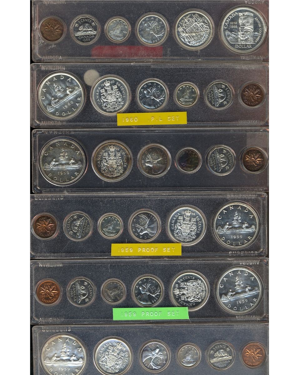 RCM Lot includes 1958, 1959(5) & 1960(5) PL Sets. Lot of 11 sets all in rigid plastic holders.