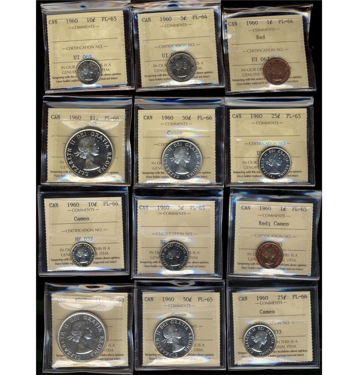 RCM Lot; includes 1960 Proof Like Set. Includes 2 graded sets mainly PL64 & PL65 with exception of one 50¢ & $1 PL66. Some with Cameo designations.