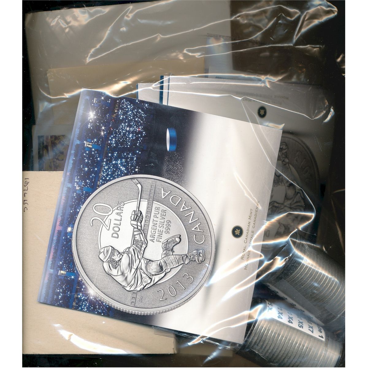 RCM Lot; includes 1992 Canada 125th Proof 25¢ set, PL Sets, 1986, 1992, Specimen Set coins 1974(2), Dbl Penny 1976, 2013 20 for 20 Hockey $20 issues and 1968-1983(43) nickel dollars. Aslo includes small lot of rather modern Chinese banknotes(6) and coins(8).