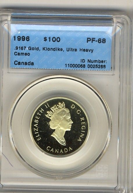 RCM Lot includes; 1996 $100 Gold Klondike CCCS PF-68 Ultra Heavy Cameo.