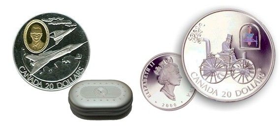 RCM Lot; includes 1996 $20 CF-105 Arrow & 2000 $20 Steam Buggy. Lot of 2 issues both in original cases.