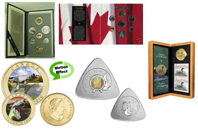 RCM Lot; includes 1997 OH! Canada & Specimen Set, Proof Sets 1971, 1973 , 2004 Elusive Loon, 2009 Six String Nation & 2010 50¢ T-Rex Dinosour Exhibition coin. All in original packaging.
