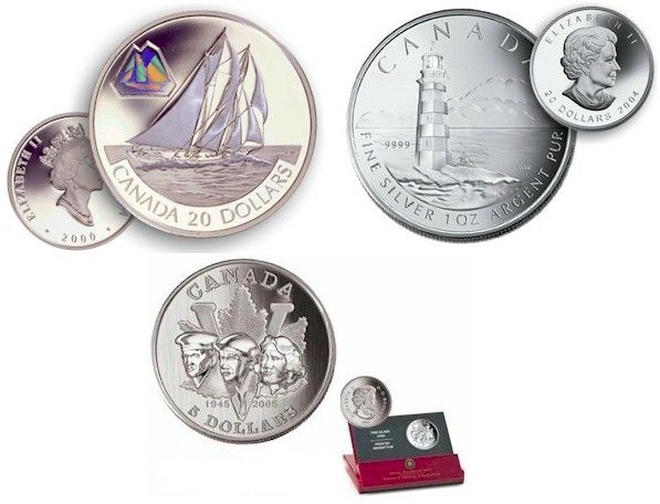 RCM Lot; includes 2000 $20 Proof Bluenose & 2004 Sambro Island. Along with 2005 $5 Proof 60th Anniversary of the End of the Second World War. Lot of 3 coins. Bluenose not in original case. (TAX Exempt)