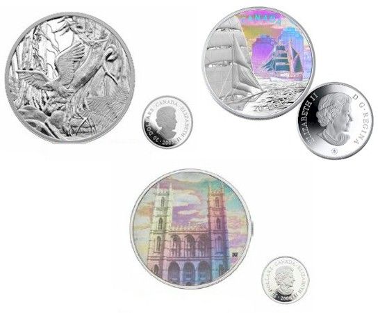 RCM Lot; includes 2005 National Parks Collection - Pacific Rim, 2006 Notre Dame Basilica $20 Silver Coin Architectural Treasures & 2007 Tall Ships Collection $20 Coin - Brigantine. Lot of 3 coins all (TAX Exempt)