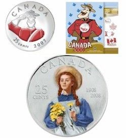 RCM Lot; includes 2005 to 2009 variety of Coloured Mint issued 25¢, Anne of Green Gables, 90th Ann. Of the end of the First World War, Canada 2005 & 2007 plus others. 8 different issues.