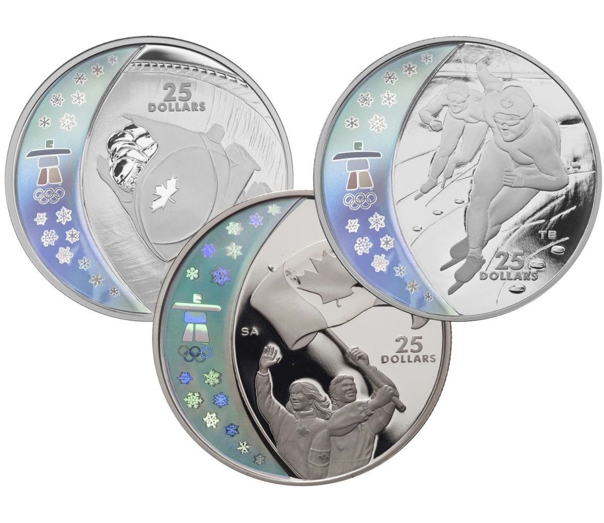 RCM Lot; includes 2007, 2008 & 2009 $25 Sterling Coins for the Vancouver Olympics Games. Complete Set of 15 coins all in individual original packages.
