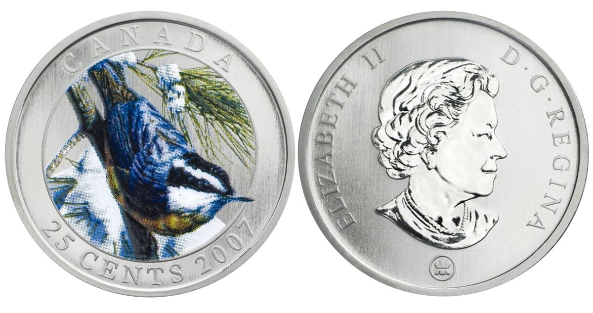 RCM Lot; includes 2007 25¢ Coloured - Red-Breasted Nuthatch. Comes in original packaging.