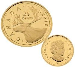 RCM Lot; includes 2010 25 Cent .5g Gold Caribou (TAX Exempt). Lot of 5 coins