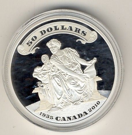 RCM Lot, includes 2010 $50 Proof Silver 75th Anniversary of the first Bank Notes. 5 oz coin, limited edition with only 2000 struck. Comes in original case.