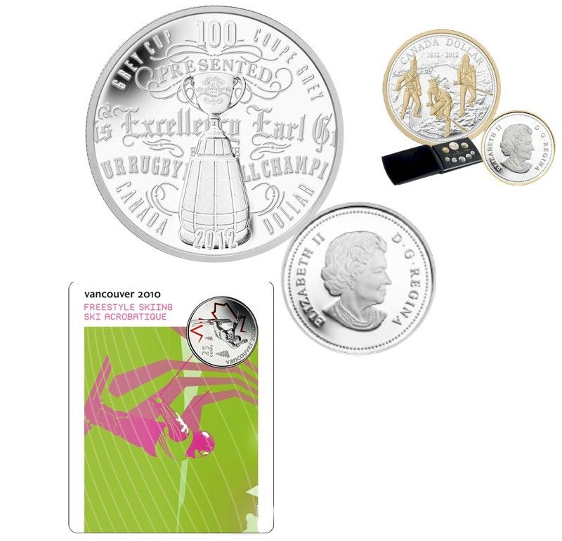RCM Lot; includes 2012 Proof Set, Proof Limited Edition Grey Cup $1, Vancouver 2010 Olympic Winter gAmes Sport Coin Cards Holder with Cards, & BU roll of Loon Dollars.
