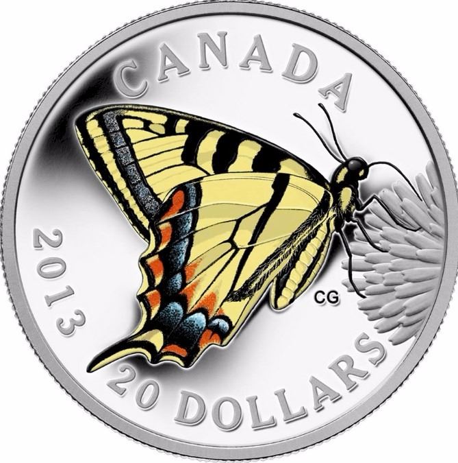 RCM Lot; includes 2013 $20 Butterflies of Canada: Canadian Tiger Swallowtail - Pure Silver Coin. Tax Exempt.