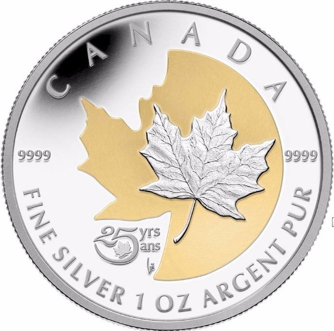 RCM Lot; includes 2013 $5 The Silver Maple Leaf, 25th Anniversary - Pure Silver Coin with Selective Gold Plating. Tax Exempt.