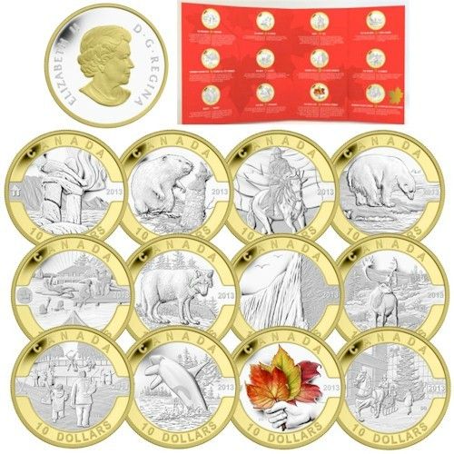RCM Lot; includes 2013 Oh 'Canada $10 Fine silver/Gold plated 12 coin set. Depecting the images that plumb the depths of Canadian pride and kindle Canadian's love for their home. Comes in original wooden case. Tax exempt.