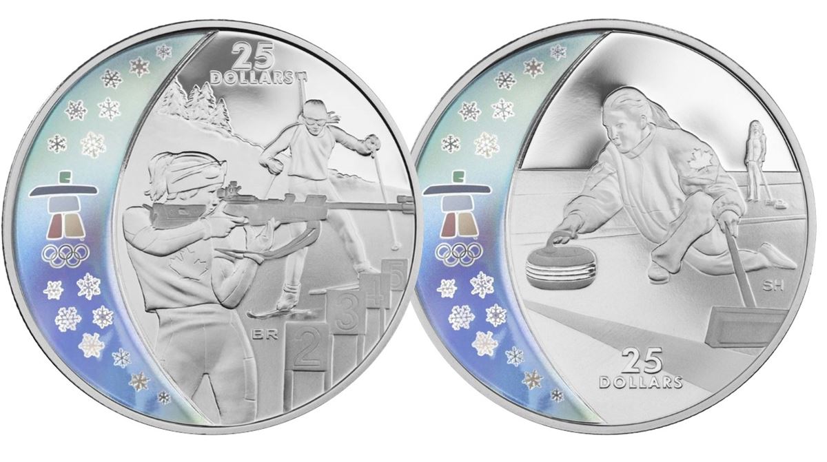 RCM Lot; includes $25 Sterling Silv Olympic Games - Curling & Biathlon. Lot of 2 issues both in original packaging.