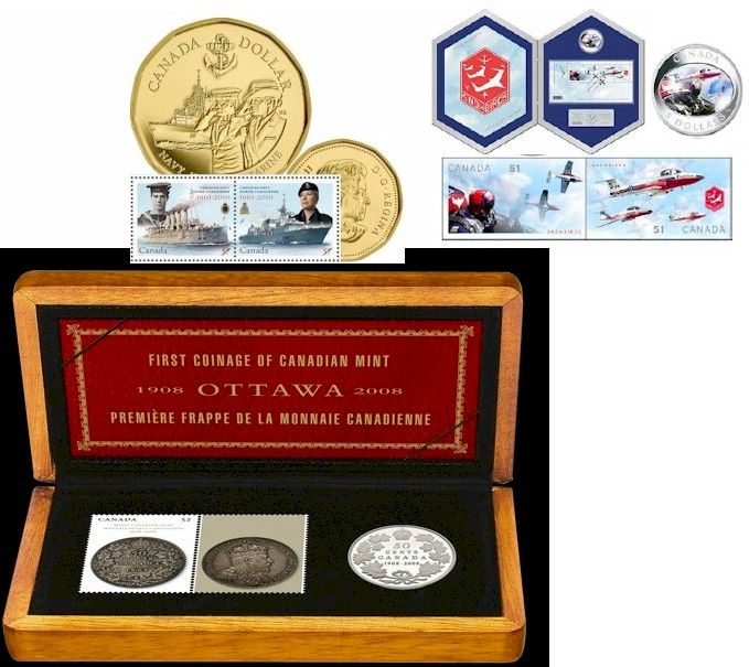 RCM Lot; includes Coin & Stamp Set 2006, 2008 & 2010. Lot of 3 sets both in original packaging.