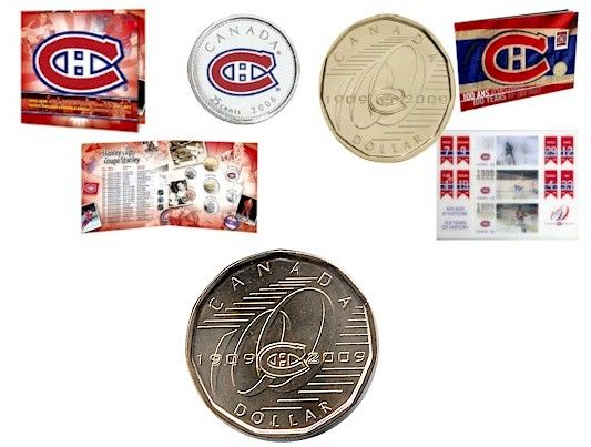 RCM Lot; includes Montreal Canadiens 2005/2006 Gift Set, 2009 Coin & Stamp Set & Original BU Dollar roll.