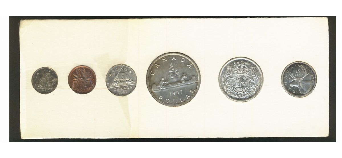 RCM Lot; includes PL Sets 1957 in original white cardboard holder. Some examples with Cameo's. No pliofilm cover.