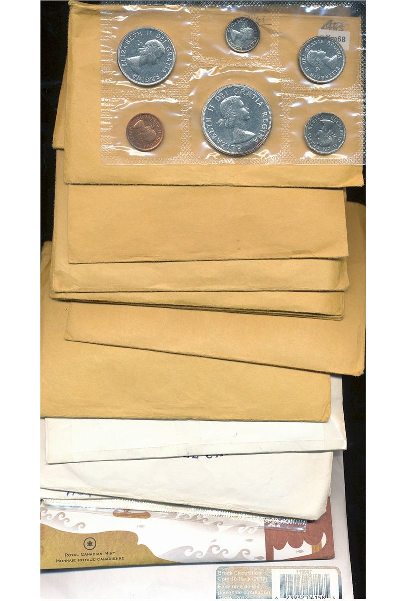 RCM Lot; includes PL Sets 1961 to 1969, 1972(2), 1987, 2011 SP Ed., Brock & Tecumseh Circulation Coin 10-Pack. Lot of 15 Sets all in cellophanes.