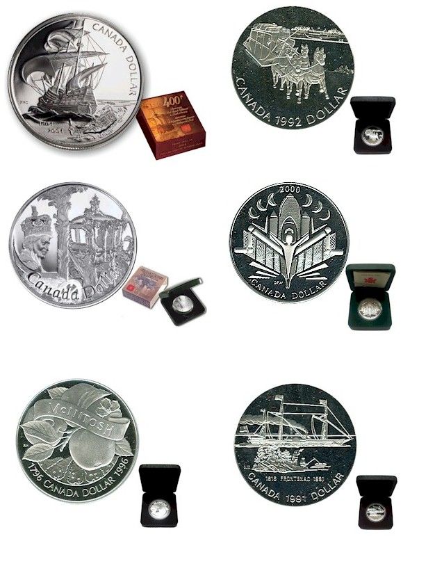 RCM Lot; includes Proof Dollars 1992 to 2004. Lot of 13 pcs, one of each date all in original cases.