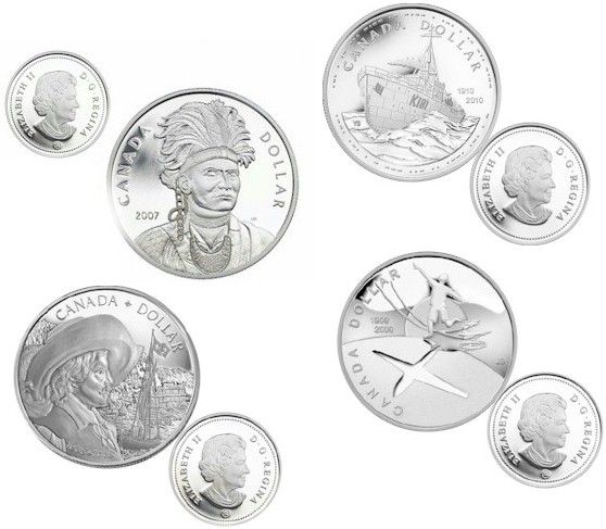 RCM Lot; includes Proof Dollars 2007 to 2010, with 2 issues of the 2010. Lot of 5 pcs all in original cases.