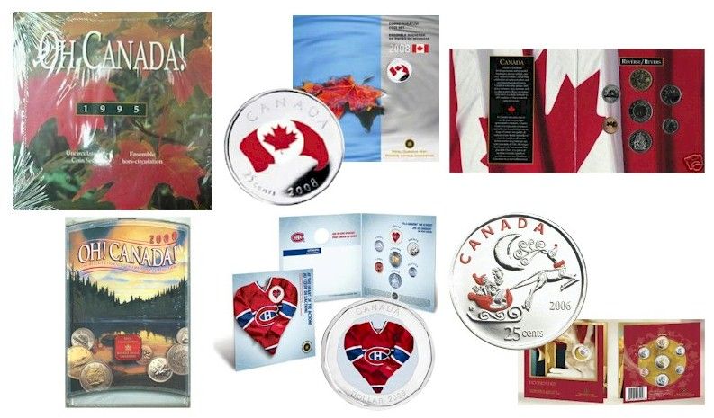 RCM Lot; includes Unc Sets 1995 Oh! Canada, 1997, 2000, 2008, Holiday 2004, 2006, Graduation 2005, Mtl Canadiens 2006 & 2009. Lot of 9 sets.