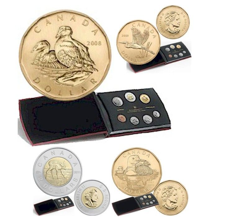 RCM Lot; includesSpecimen Sets 2006, 2007, 2008, 2009, 2010, 2010 Sp Ed, 2011 & 2012 25th Ann. Of the Loonie. 8 Sets all in original packaging.