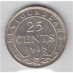 1919-C Newfoundland Canada Silver 25-Cent Quarter Coin - ICCS Graded EF-40 (XOB 481)