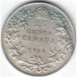 1928 Canadian Silver 25-Cent Quarter Coin - EF Condition