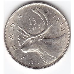 1943 Canadian Silver 25-Cent Quarter Coin - MS-63 Condition