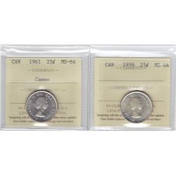 1953 Canada ICCS Graded Silver 25-Cent Quarter Coin - Large Date, MS-63