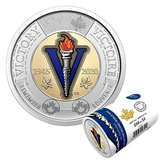 RCM Roll of Canada $2 Coins End of World War 75 Years - Victory with Colour