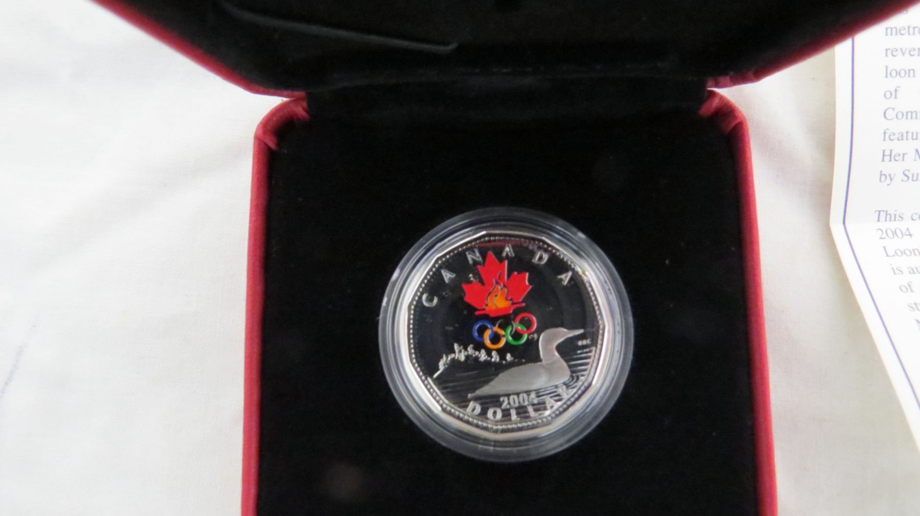 RCM Sterling Silver Lucky Loonie (colored) Olympics Coin - 2004 case + certificate