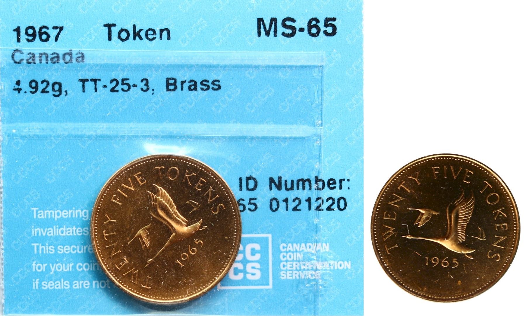 RCM Test Token; TT-25.3 Brass Round w/3 Canada Geese 25¢ CCCS MS65.