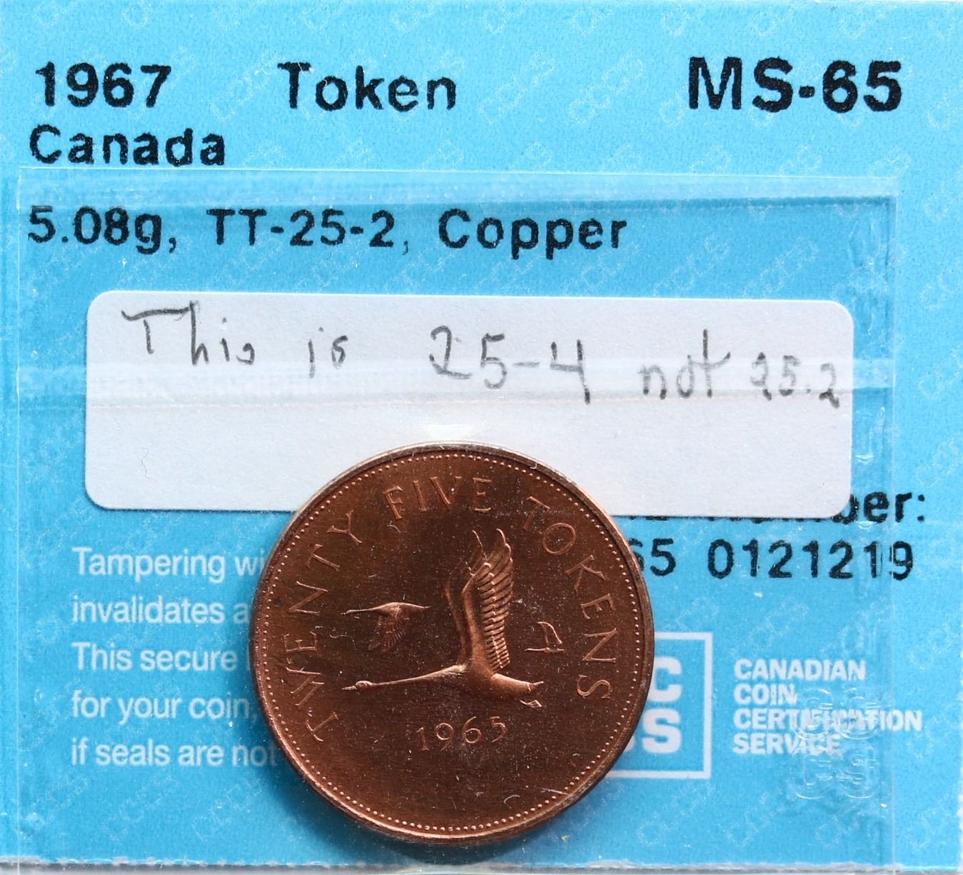 RCM Test Token; TT-25.4 Copper Round w/3 Canada Geese 25¢ CCCS MS65. Holder mis-identified.