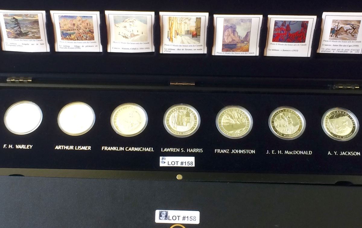RCM: The Group of Seven Set- F.H. Varley, Arthur Lismer, Franklin Carmicheal, Lawren S. Harris, Franz Johnston, J.E.H. MacDonald, A.Y. Jackson. Seven x 20$ Pure Silver Coin. C.O.A. Box & Sleeve
