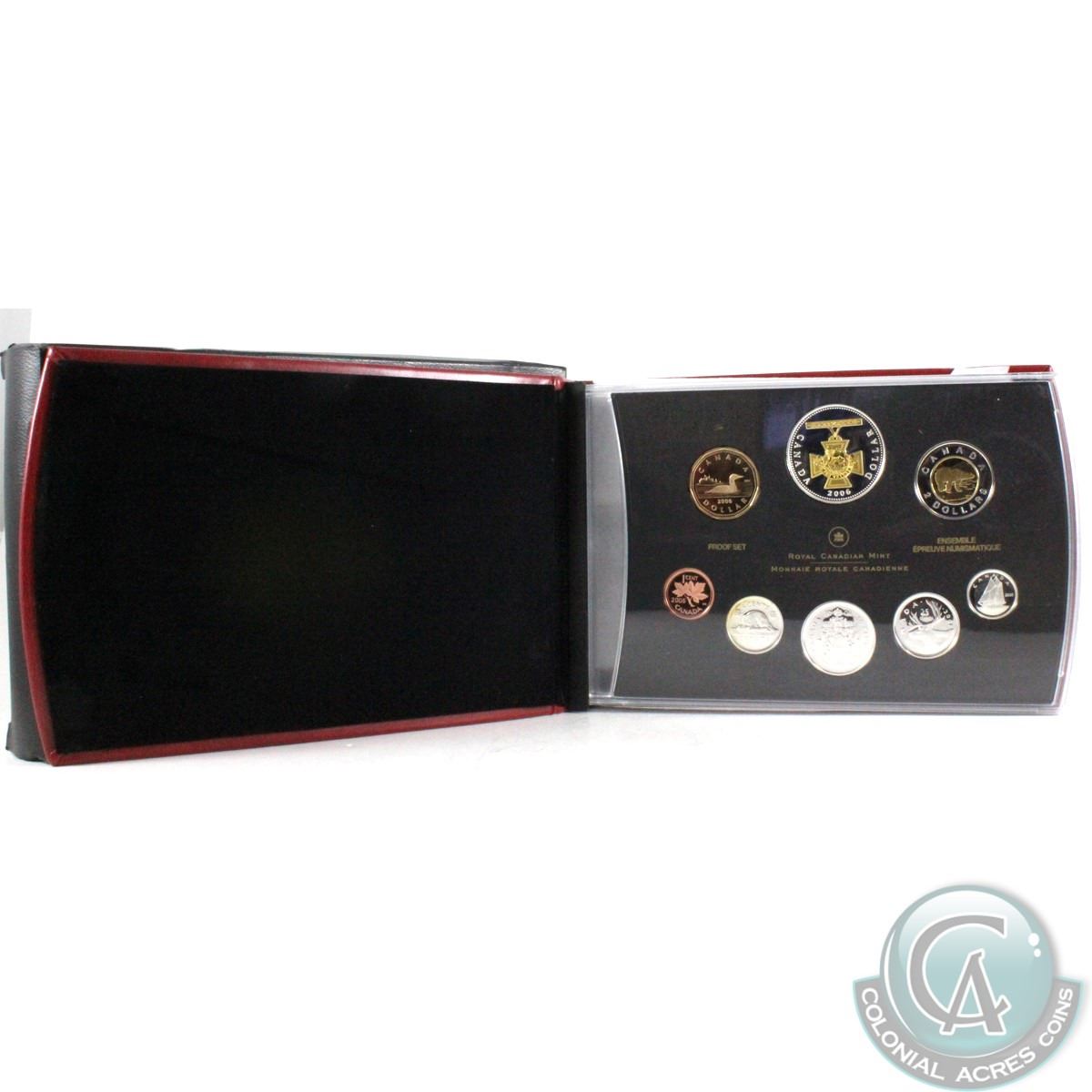 RCM issue: 2006 Canada Proof Double Dollar Set, with Gold Plated Proof Silver Dollar Commemorating the Victoria Cross (Some coins are lightly toned, outer box is tattered)