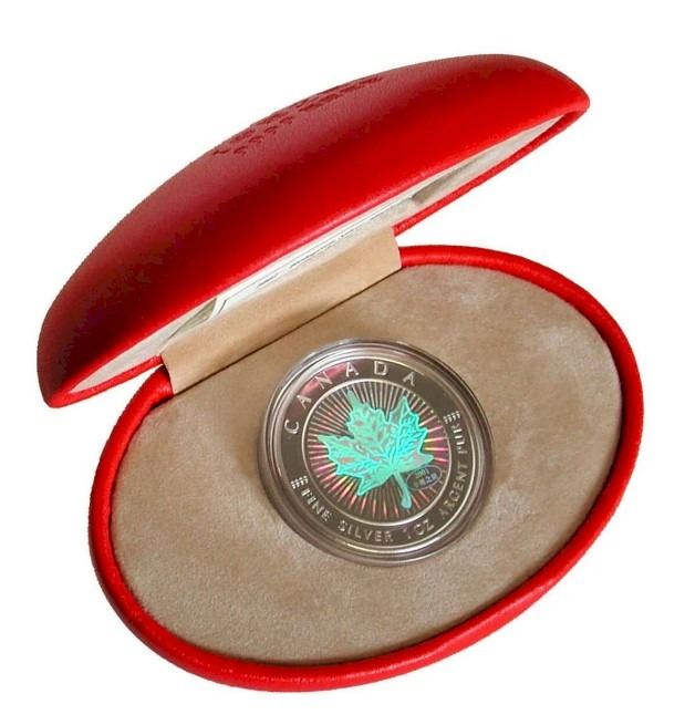 RCM lot; 2001 $5 Maple of Good Fortune - 1 oz. Pure Silver Hologram Coin. Tax Exempt.