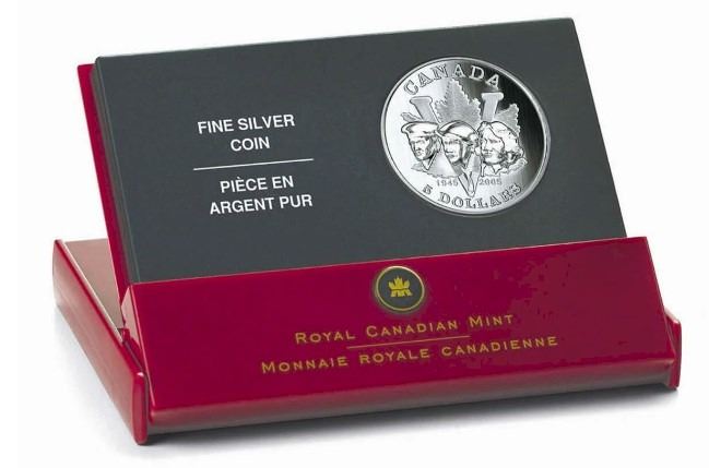 RCM lot; 2005 $5 End of the Second World War, 60th Anniversary - Pure Silver Coin. Tax Exempt.