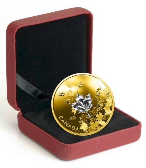 RCM lot; 2017 $50 Whispering Maple Leaves - 3 oz. Pure Silver Gold-Plated Coin. Tax Exempt.