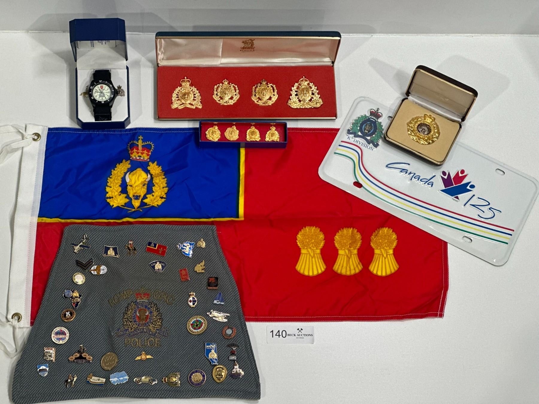 Includes: Flag, pins, coins, medal, license plate and watch.