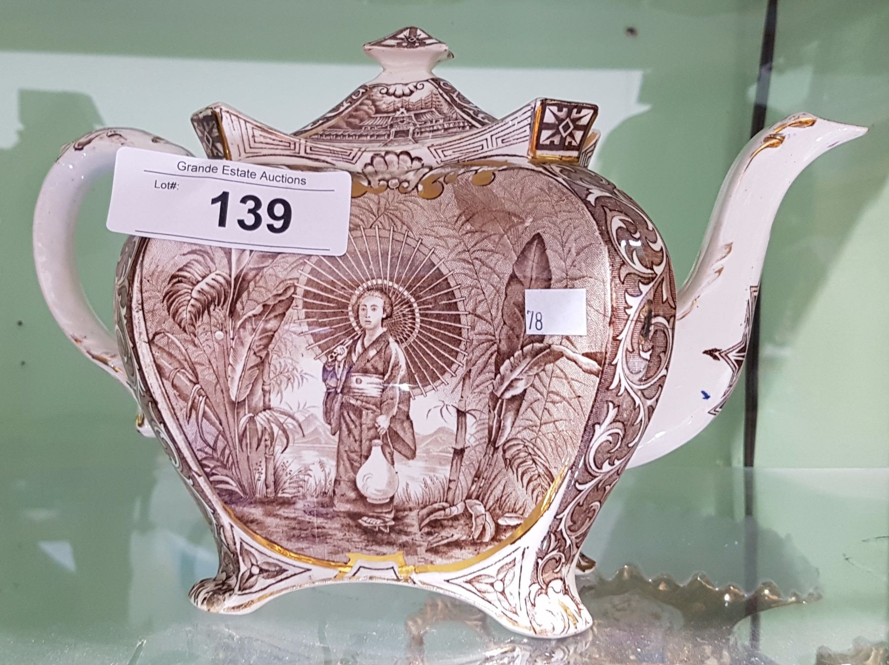 RD SHAPE ENGLAND VICTORIAN TEAPOT W/ASIAN MOTIF
