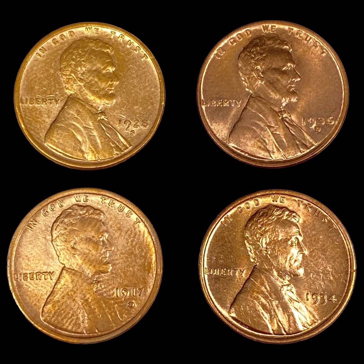 RD Wheat Cents, x4 UNCIRCULATED