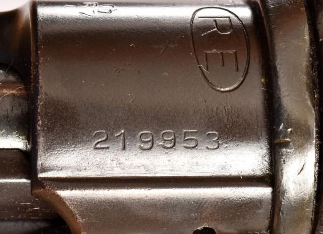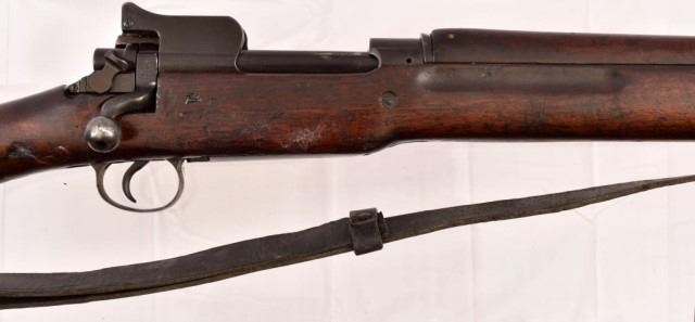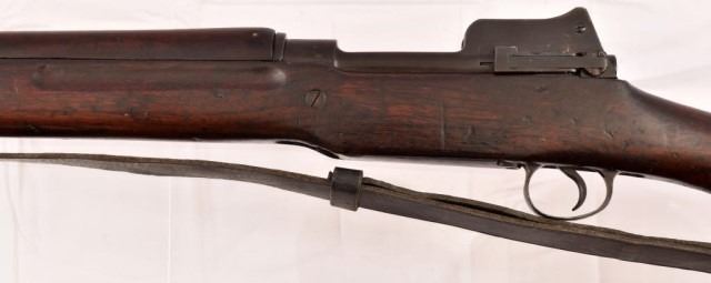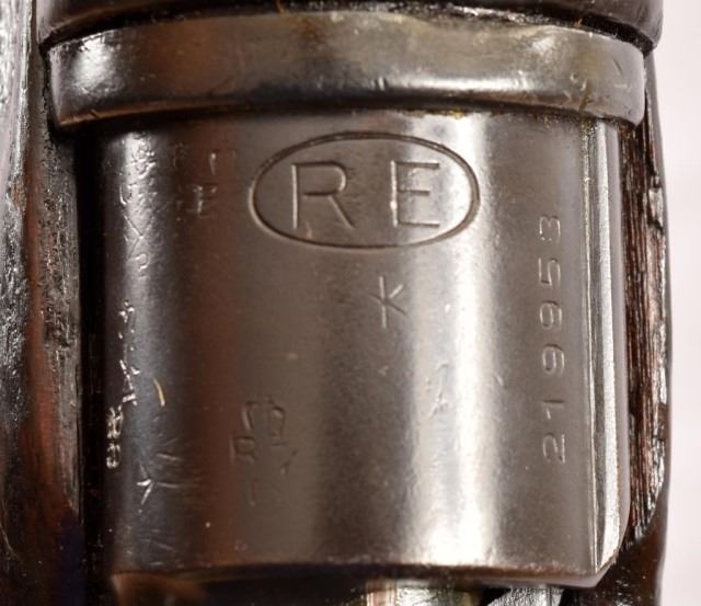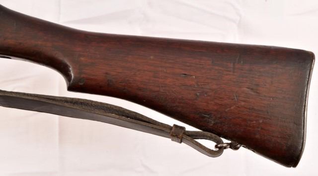 * 26" barrel. Stock dated 1917, with leather sling. The only manufacturer mark is RE.