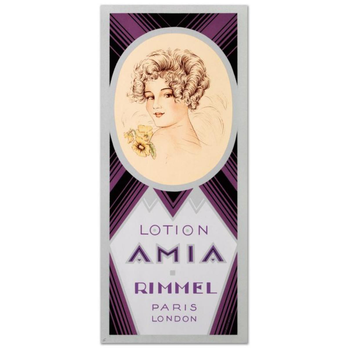 "Rimmel-Lotion Amia" is a hand pulled lithograph on paper by the RE Society. Includes letter of authenticity. Measures approx. 10.5" x 23.5" (with border), 9" x 22.5" (image). Reference #: 202915.