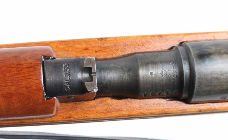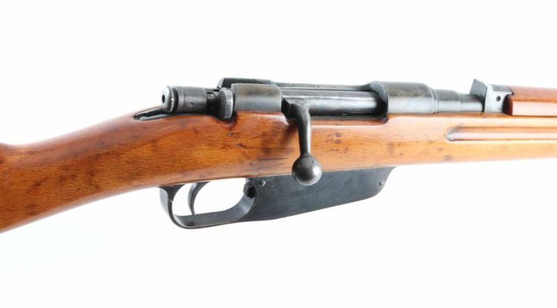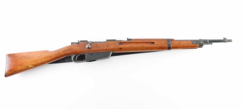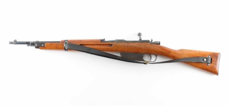 SN: V8797 Blued bolt-action Italian military rifle with a 21" barrel, leather sling, no import marks, "Terni" stamp, 1939 breech date and wood stock. Bluing has faded to a mottled grey color with edge wear on much of the rifle, surface rust on the buttplate and scratches on the bottom metal. Small dent to edge of rear sight. Bore is turning frosty with good rifling. Action works well. Wood stock serial number matches barrel serial number. Stock has been refinished over prior marks and repairs, retains good fit to metal. Condition is NRA Good+ (refinished stock) *** C&R Firearm ***